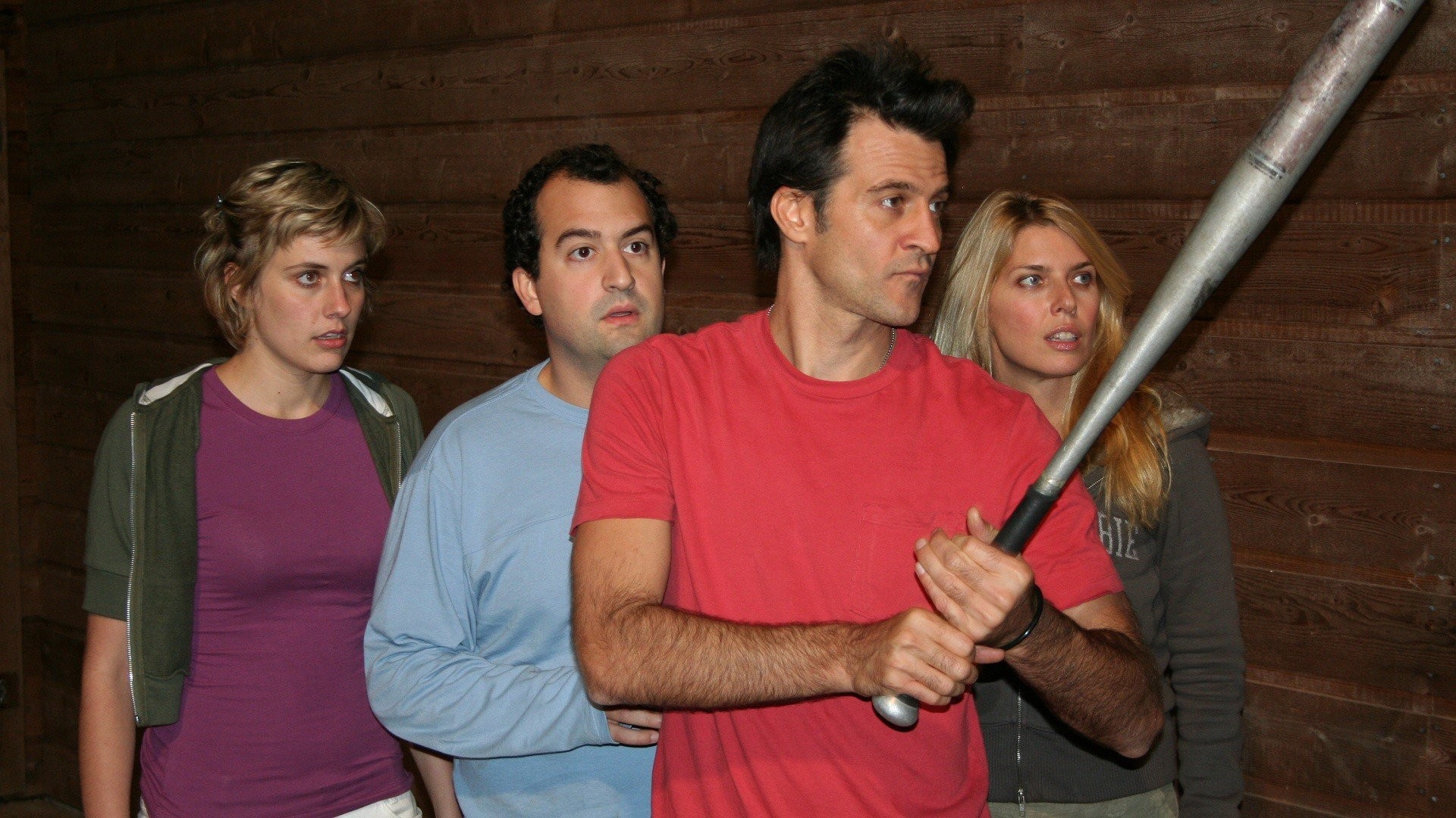 Four struggling actors retreat to a cabin in Big Bear, California in order to write a screenplay that will make them all stars. Problem is: What happens when their story idea -- a horror flick about a group of friends tormented by a villain with a bag over his head -- starts to come true?