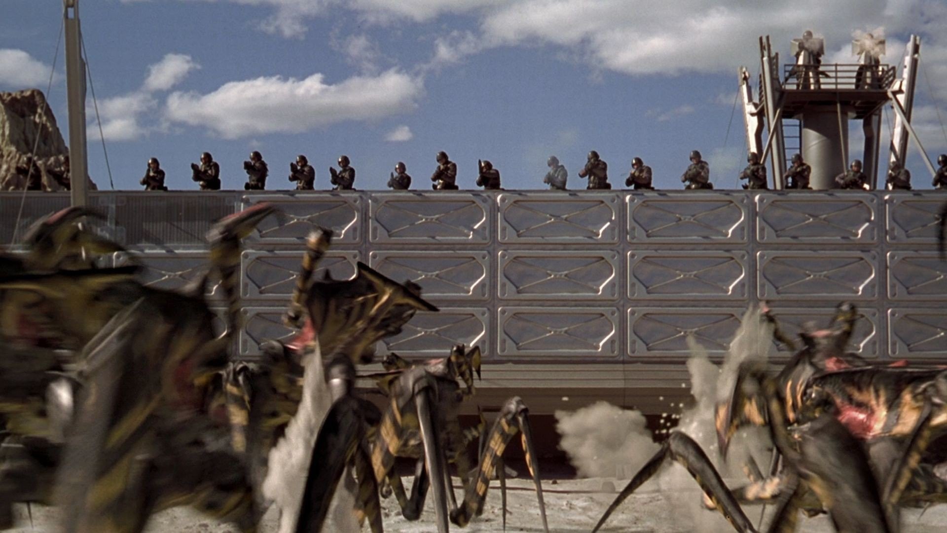 Humans in a fascistic, militaristic future do battle with giant alien bugs in a fight for survival.
